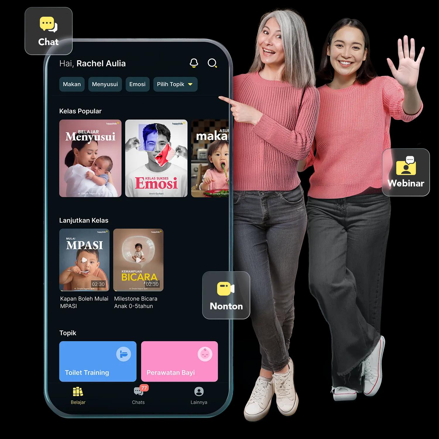 HappyKids memudahkan perjalanan parentingku lewat berbagai video singkat, namun isinya sangat mudah dipahami. Penentuan pemberian judul & topik juga sangat membantu sesuai klasifikasi masalah. Fitur ‘Chat Tanya Jawab’ dengan bidan bantu selesaikan secara langsung pertanyaan yg spesifik case by case, tampilan lengkap namun tetap simple bikin pencarian konten cepat dan relevan. Solusi praktis buat orang tua untuk tetap belajar dimanapun & kapanpun secara berulang.